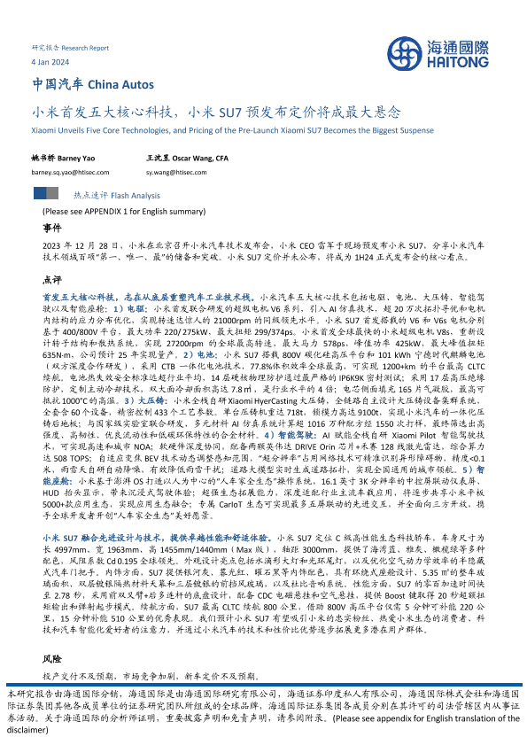 【海通国际】【20240104】小米首发五大核心科技,小米SU7预发布定价将成最大悬念-13页