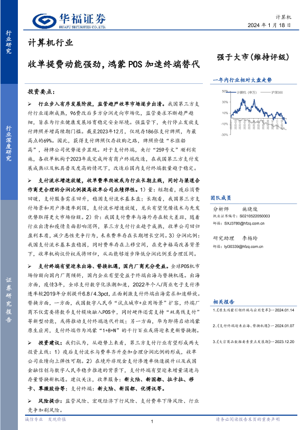 【华福证券】【20240118】计算机行业:收单提费动能强劲,鸿蒙POS加速终端替代-25页