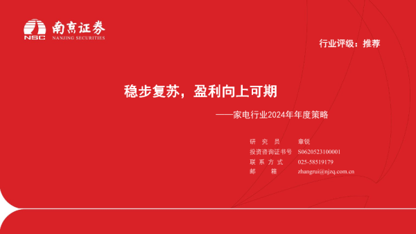 【南京证券】【20231226】家电行业2024年年度策略:稳步复苏,盈利向上可期-17页