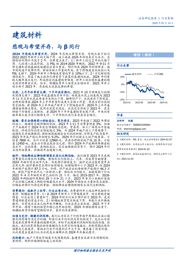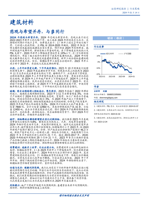 【国盛证券】【20240114】建筑材料行业策略:悲观与希望并存,与β同行-24页