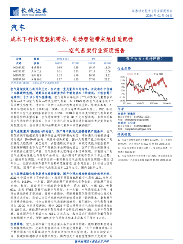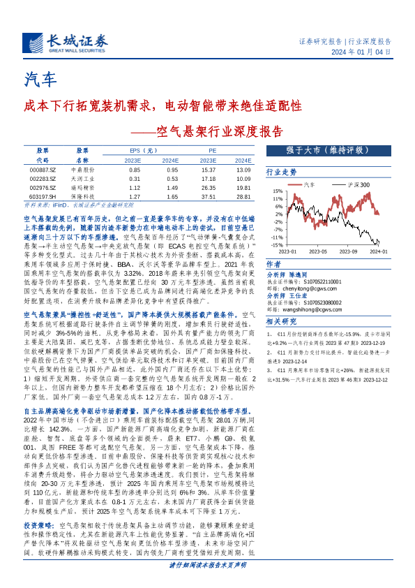 【长城证券】【20240104】空气悬架行业深度报告:成本下行拓宽装机需求,电动智能带来绝佳适配性-29页