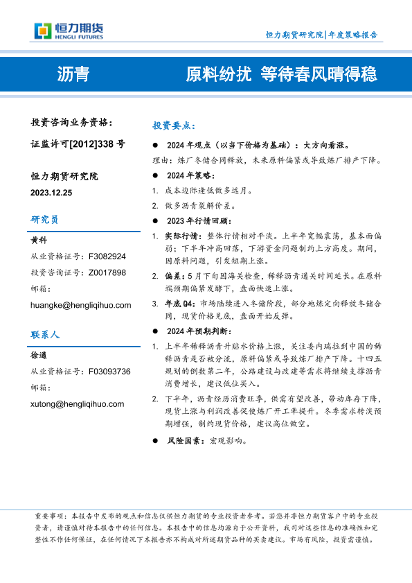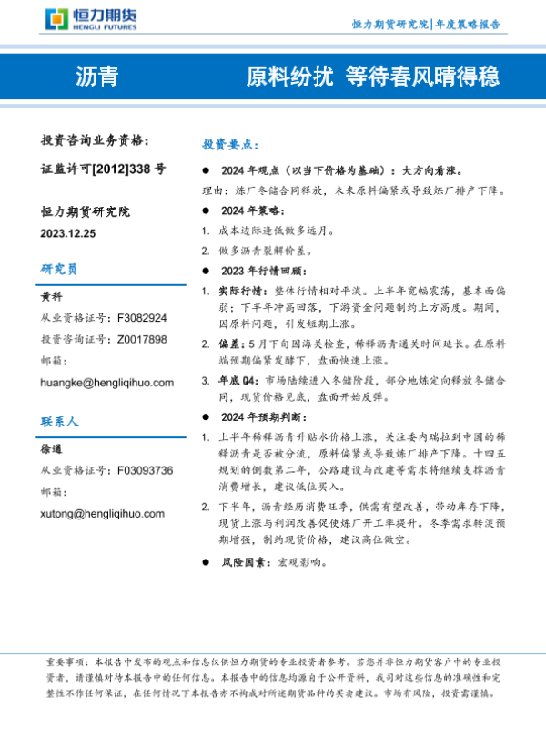 【恒力期货】【20231225】沥青年度策略报告:原料纷扰 等待春风晴得稳-16页