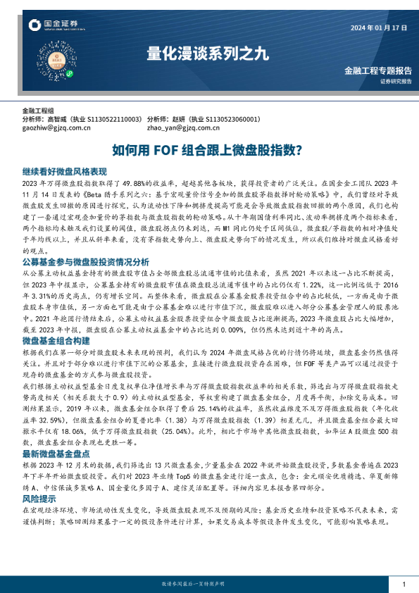 【国金证券】【20240117】量化漫谈系列之九:如何用FOF组合跟上微盘股指数?-18页