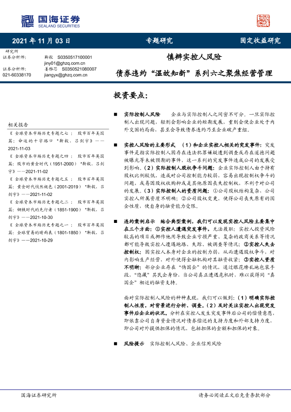 【国海证券】【20211103】债券违约“温故知新”系列六之聚焦经营管理:慎辨实控人风险-17页