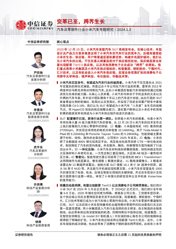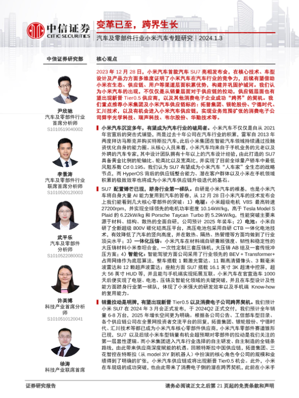 【中信证券】【20240103】汽车及零部件行业小米汽车专题研究:变革已至,跨界生长-21页