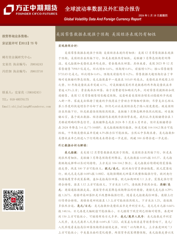 【方正中期期货】【20240118】全球波动率数据及外汇综合报告:美国零售数据表现强于预期 美国经济表现仍有韧性-18页