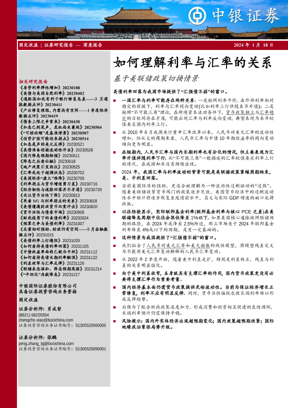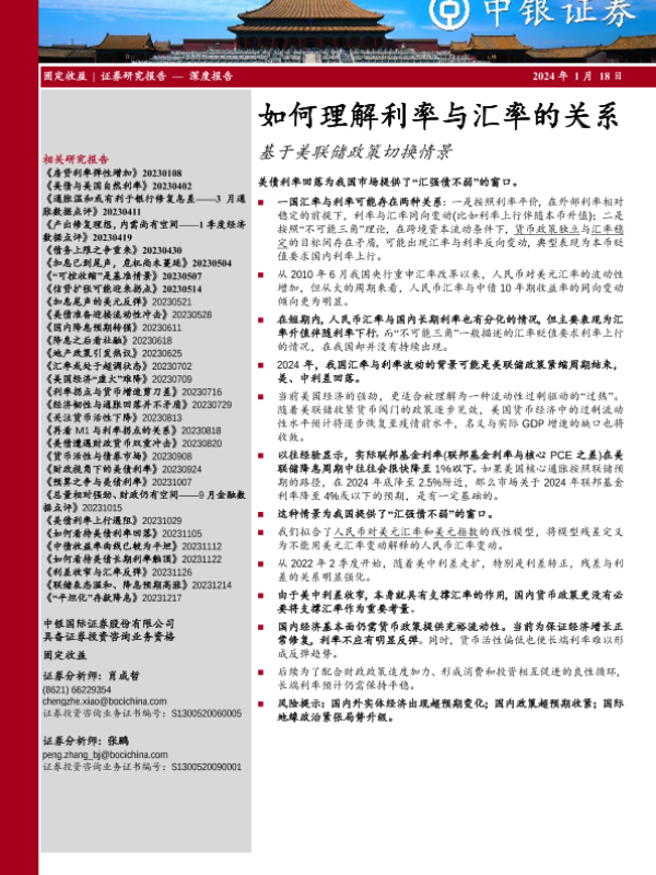 【中银证券】【20240118】如何理解利率与汇率的关系:基于美联储政策切换情景-20页