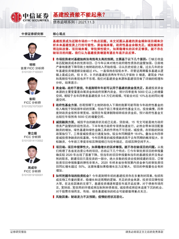 【中信证券】【20211103】债市启明系列:基建投资能不能起来?-33页