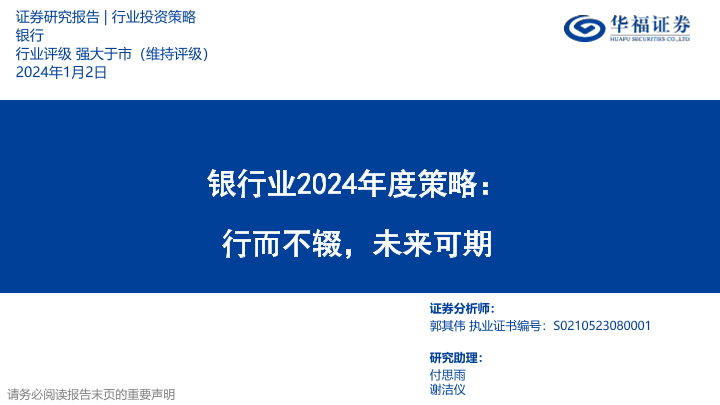 【华福证券】【20240102】银行业2024年度策略:行而不辍,未来可期-44页