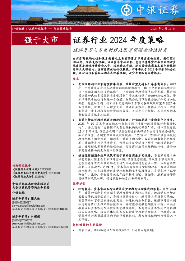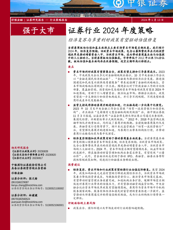 【中银证券】【20240113】证券行业2024年度策略:经济复苏与多重利好政策有望驱动估值修复-13页