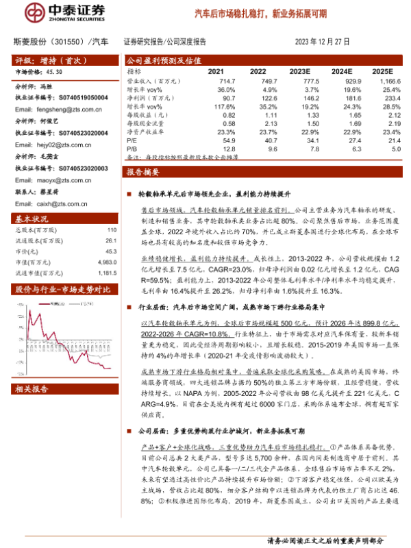 【中泰证券】【20231227】斯菱股份(301550)汽车后市场稳扎稳打,新业务拓展可期-27页