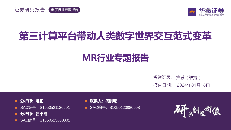 【华鑫证券】【20240116】MR行业专题报告:第三计算平台带动人类数字世界交互范式变革-50页