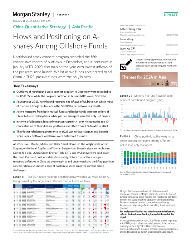 【Morgan Stanley】【20240110】中国量化策略 | 亚太区北向股票通计划的资金流动和定位-9页