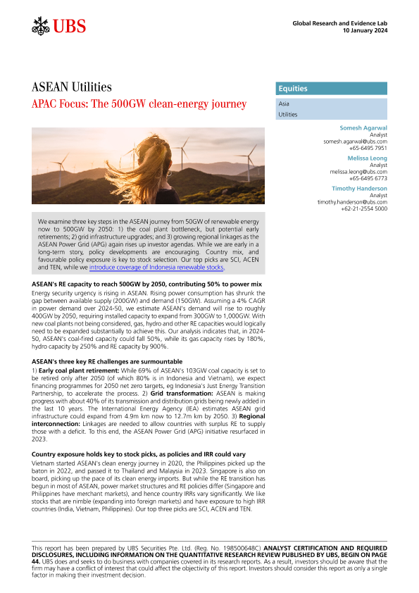 【UBS Securities Pte. Ltd.】【20240110】ASEAN Utilities The 500GW clean-energy journey-53页