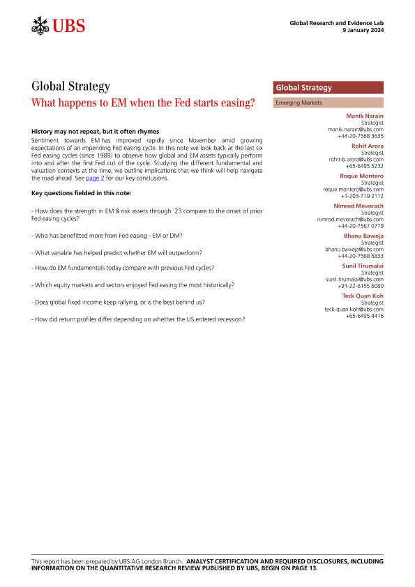 【UBS AG London Branch】【20240109】全球策略:当美联储开始宽松时新兴市场会发生什么-16页