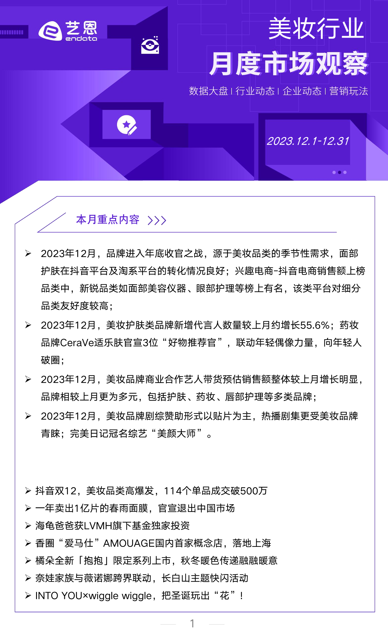【艺恩ENDATA】【202401】2023年12月美妆行业市场观察-10页