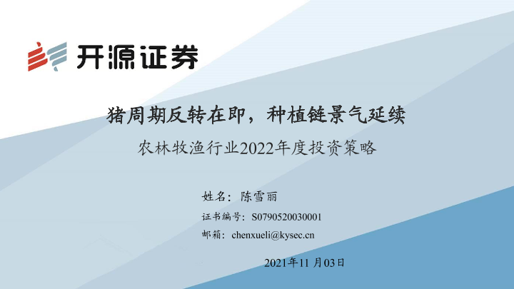 【开源证券】【20211103】农林牧渔行业2022年度投资策略:猪周期反转在即,种植链景气延续-38页