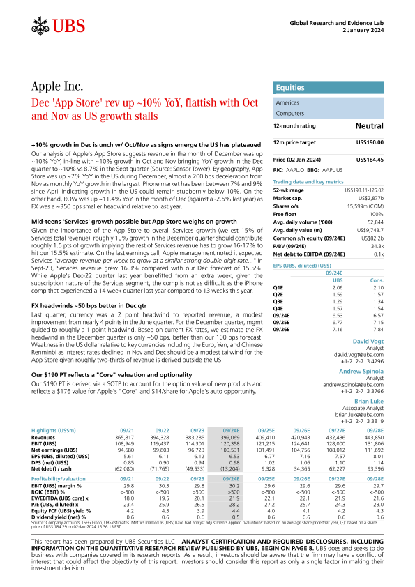 【UBS Securities LLC】【20240102】AAPL.OQ-UBS Equities-Apple Inc. _Dec App Store rev up ~10 YoY, flattish with O...-18页