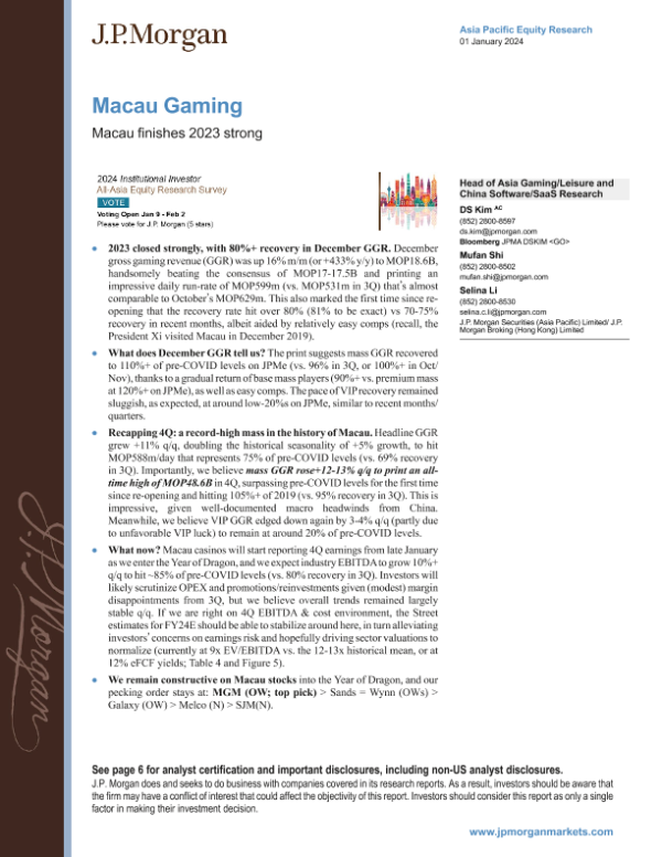 【J.P. Morgan】【20240101】JPMorgan-Macau Gaming Macau finishes 2023 strong-10页