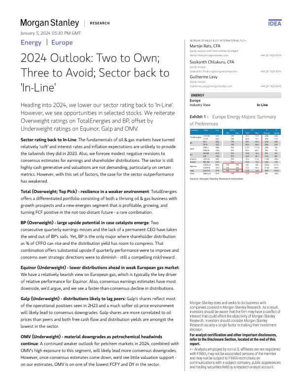 【Morgan Stanley】【2023】Morgan Stanley - Energy 2024 Outlook Two to Own; Three to Avoid; Sector back to 'In-Line'-55页