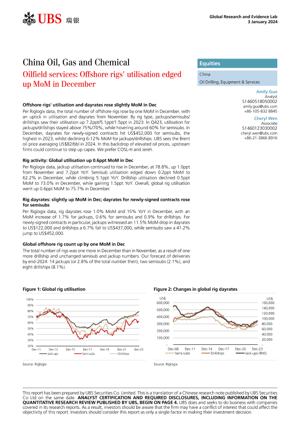 【UBS Securities Co. Limited】【20240103】中国石油、天然气和化工 - 海上钻井平台服务:2023年12月利用率环比上升-14页