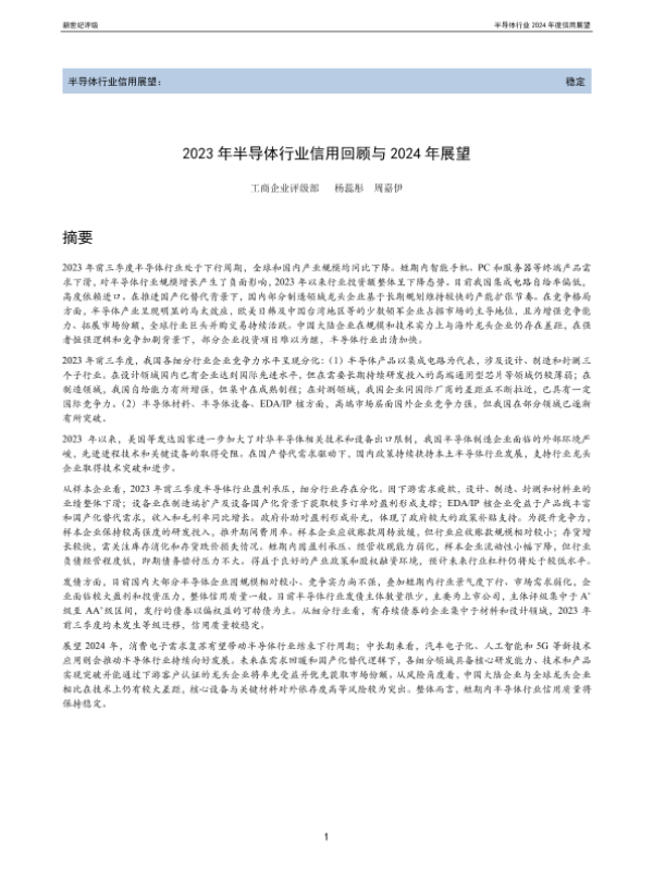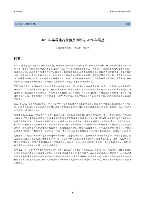 信用展望 半导体行业 市场分析 技术发展 投资趋势