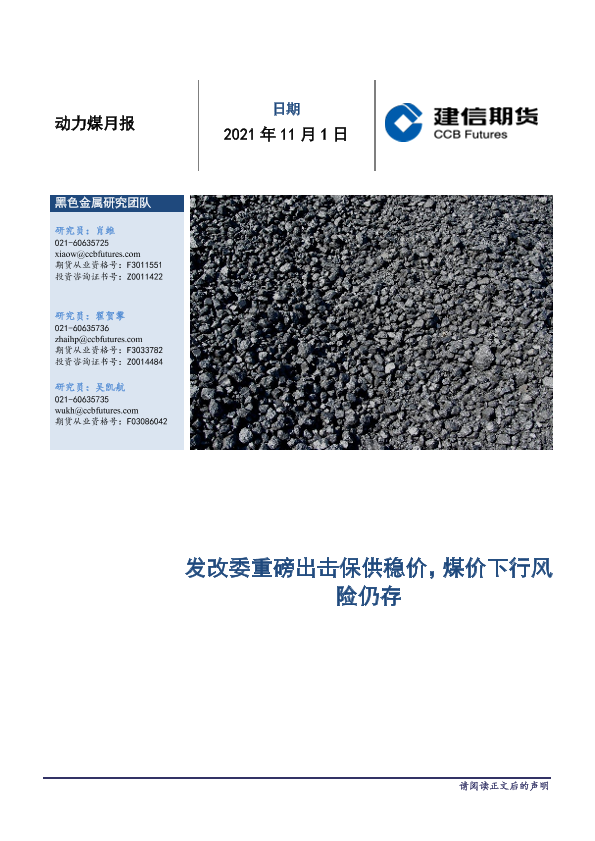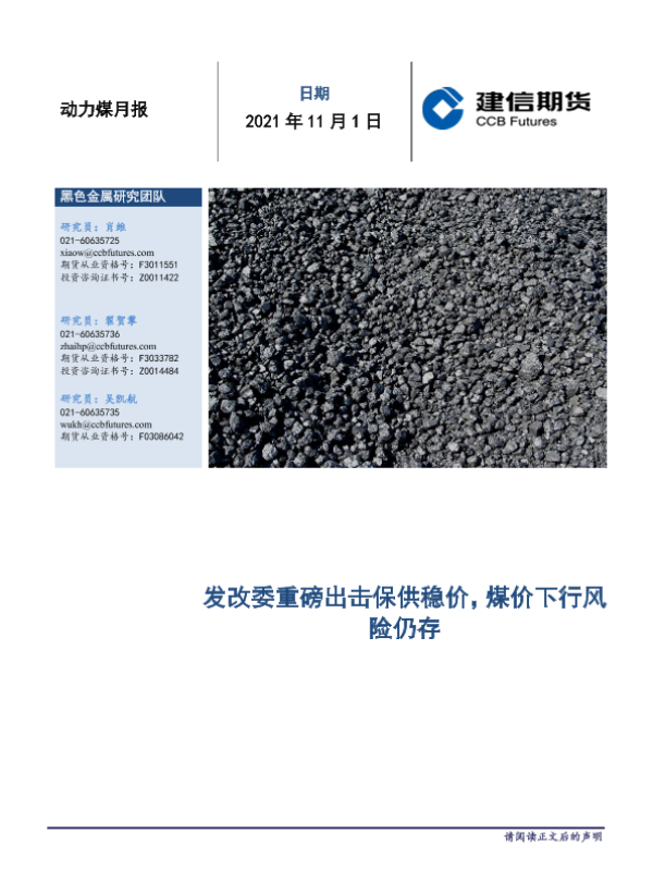 【建信期货】【20211101】动力煤月报:发改委重磅出击保供稳价,煤价下行风险仍存-18页