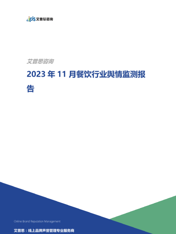【艾普思咨询】【202311】艾普思咨询:2023年11月餐饮舆情监测数据盘点-24页