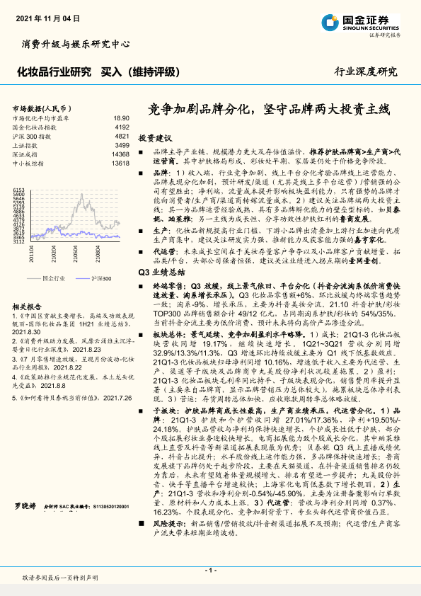 【国金证券】【20211104】化妆品行业:竞争加剧品牌分化,坚守品牌两大投资主线-16页