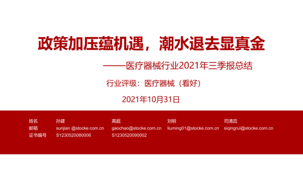 【浙商证券】【20211031】医疗器械行业2021年三季报总结:政策加压蕴机遇,潮水退去显真金-19页