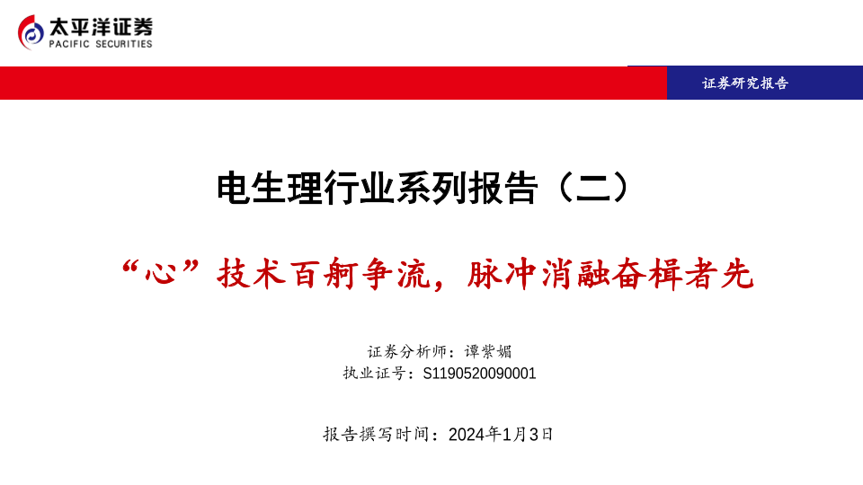 【太平洋证券】【20240103】电生理行业系列报告(二)-“心”技术百舸争流-脉冲消融奋楫者先-53页