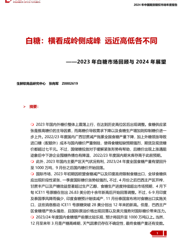 【方正中期期货】【20240109】2023年白糖市场回顾与2024年展望:白糖:横看成岭侧成峰 远近高低各不同-30页