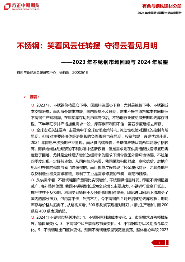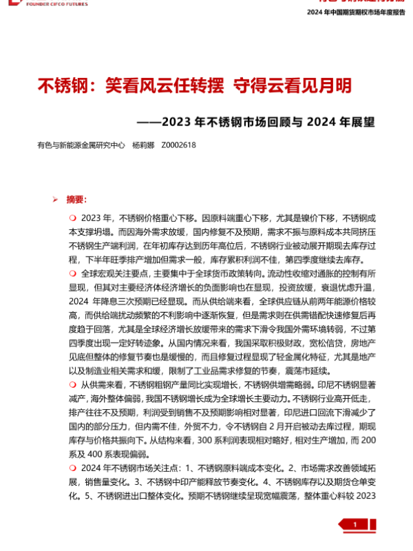 【方正中期期货】【20240109】2023年不锈钢市场回顾与2024年展望:不锈钢:笑看风云任转摆 守得云看见月明-34页