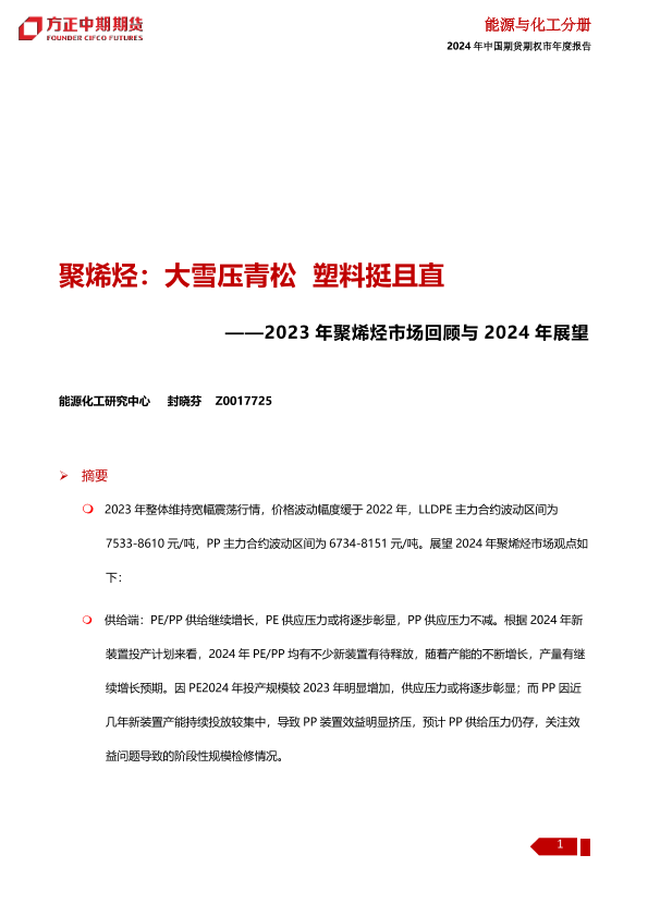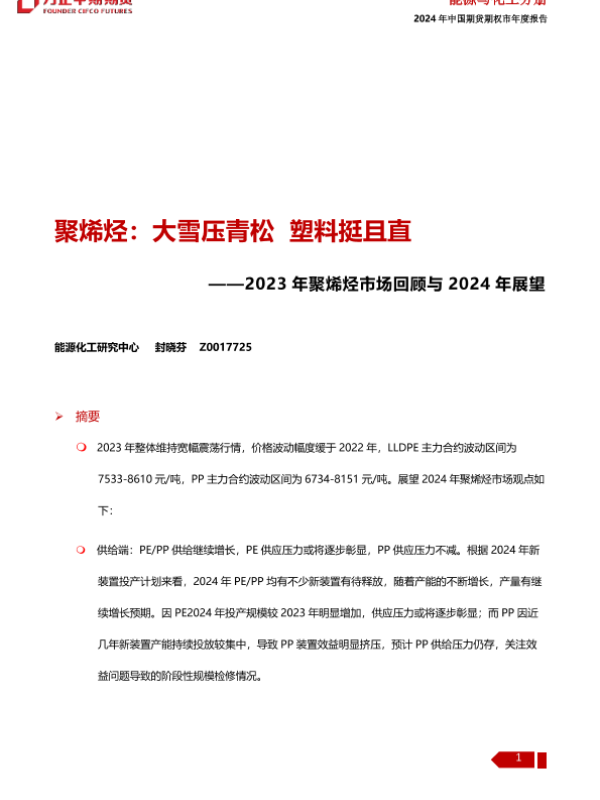 【方正中期期货】【20240109】2023年聚烯烃市场回顾与2024年展望:聚烯烃:大雪压青松 塑料挺且直-31页