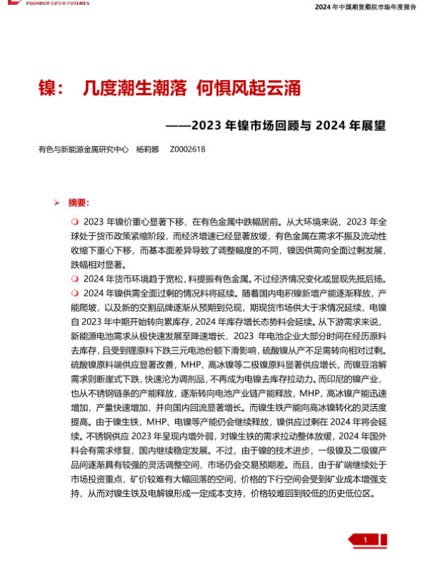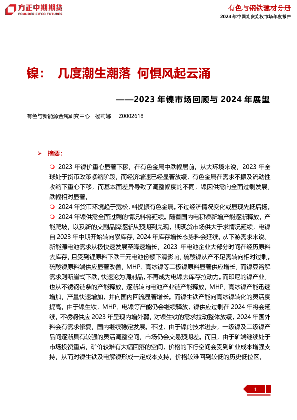 【方正中期期货】【20240109】2023年镍市场回顾与2024年展望:镍:几度潮生潮落 何惧风起云涌-41页