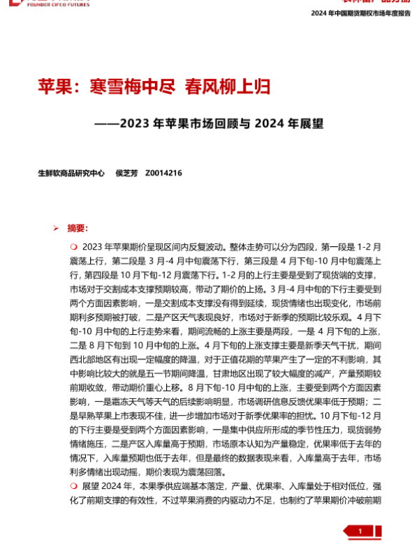 2024展望 农产品期货 市场回顾 期货期权 苹果市场