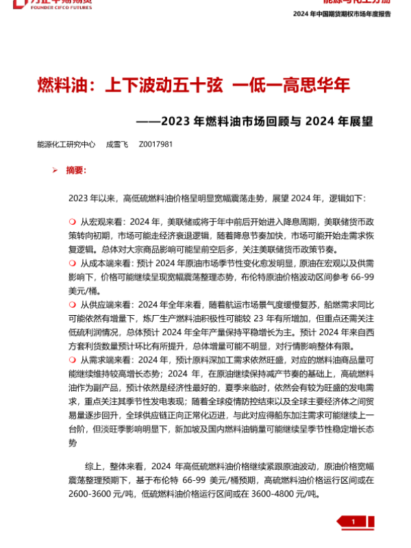【方正中期期货】【20240109】2023年燃料油市场回顾与2024年展望:燃料油:上下波动五十弦 一低一高思华年-34页