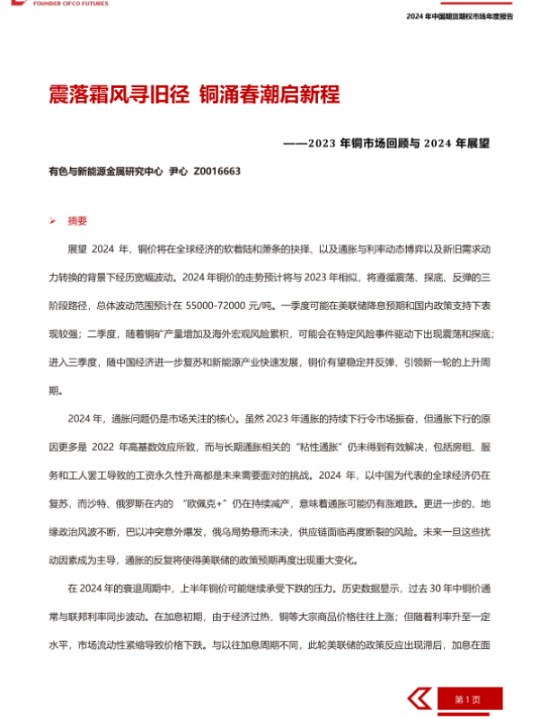 【方正中期期货】【20240109】2023年铜市场回顾与2024年展望:震落霜风寻旧径 铜涌春潮启新程-64页