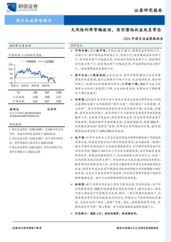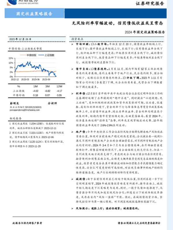 【财信证券】【20231226】2024年固定收益策略报告:无风险利率窄幅波动,信用债低收益或呈常态-24页