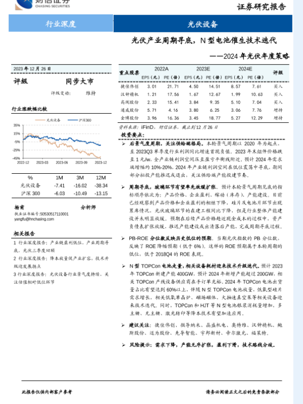 【财信证券】【20231226】2024年光伏年度策略:光伏产业周期寻底,N型电池催生技术迭代-33页