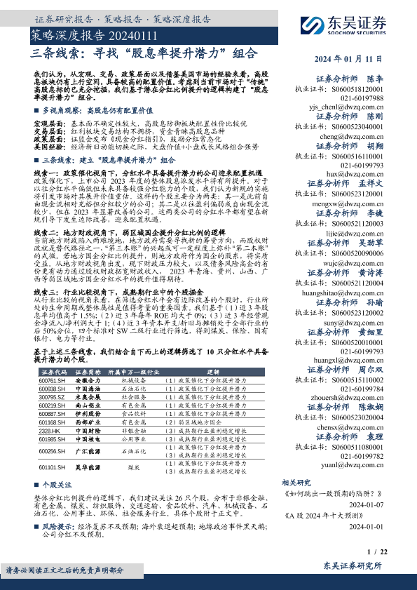 【东吴证券】【20240111】策略深度报告:三条线索:寻找“股息率提升潜力”组合-22页