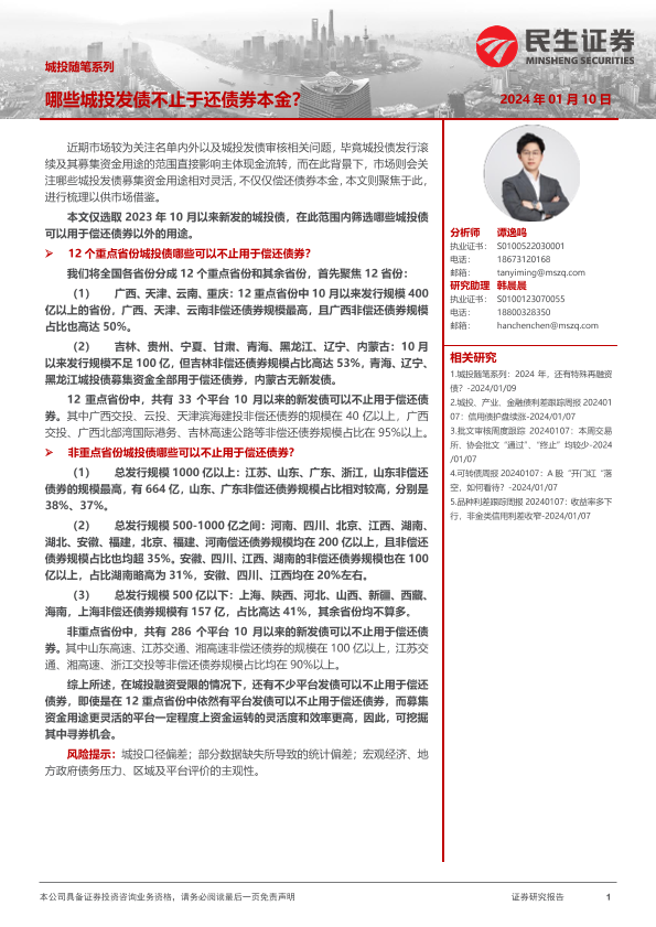 【民生证券】【20240110】城投随笔系列:哪些城投发债不止于还债券本金?-16页