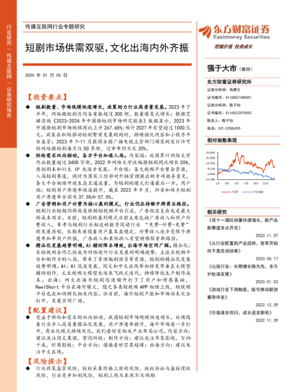 【东方财富证券】【20240105】传媒互联网行业专题研究:短剧市场供需双驱,文化出海内外齐振-27页