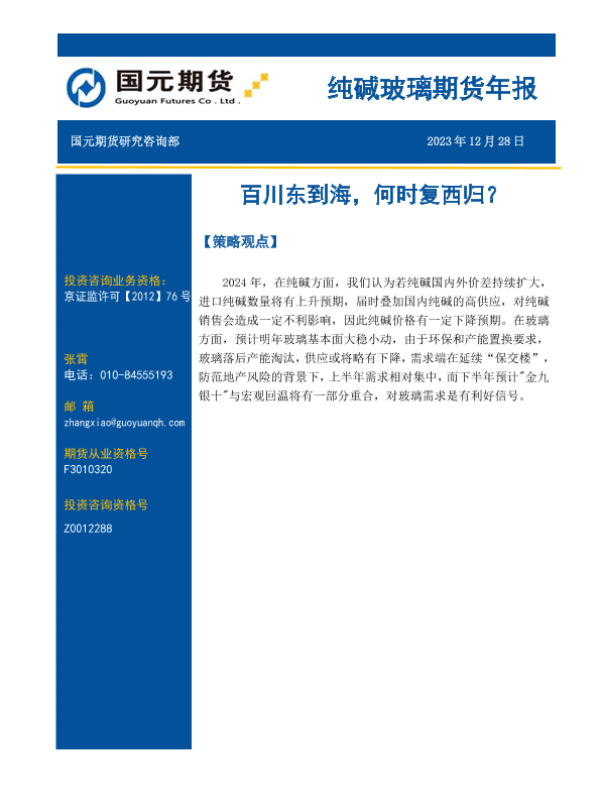 【国元期货】【20231228】纯碱玻璃期货年报:百川东到海,何时复西归?-13页