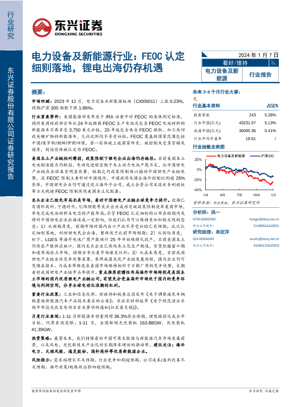 【东兴证券】【20240107】电力设备及新能源行业:FEOC认定细则落地,锂电出海仍存机遇-17页