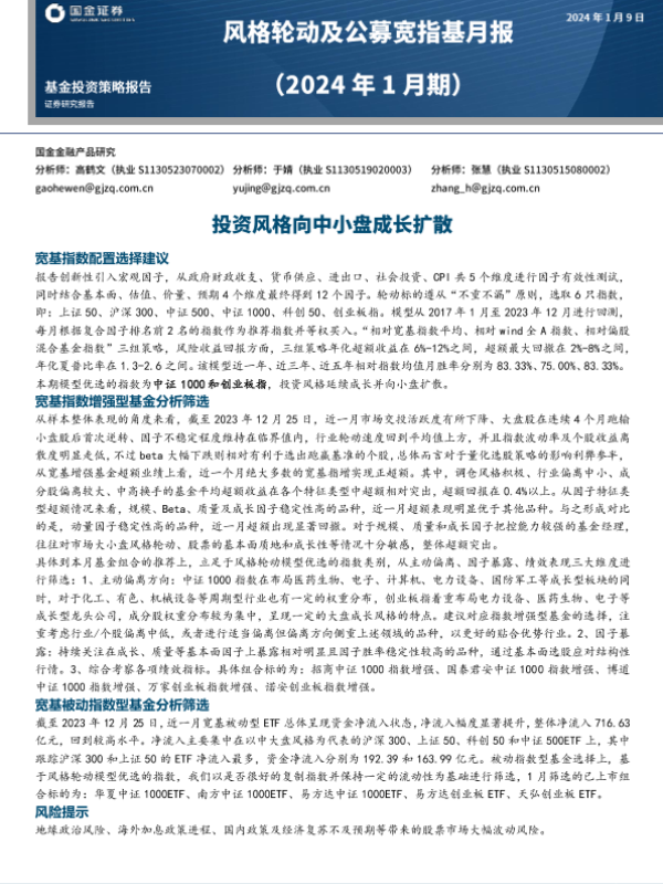 【国金证券】【20240109】风格轮动及公募宽指基月报(2024年1月期):投资风格向中小盘成长扩散-16页