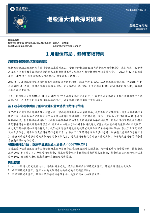 【国金证券】【20240105】港股通大消费择时跟踪:1月潜伏布局,静待市场转向-10页