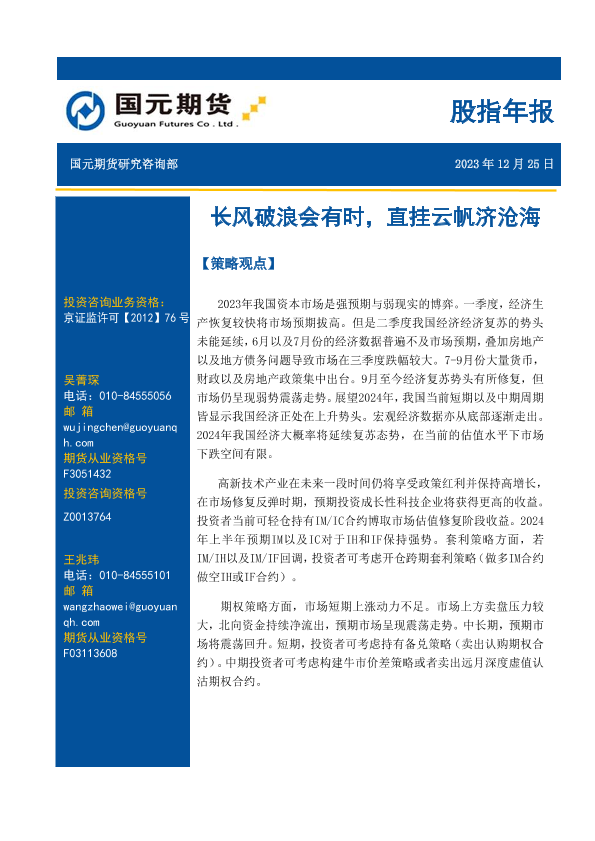 【国元期货】【20231225】股指年报:长风破浪会有时,直挂云帆济沧海-28页