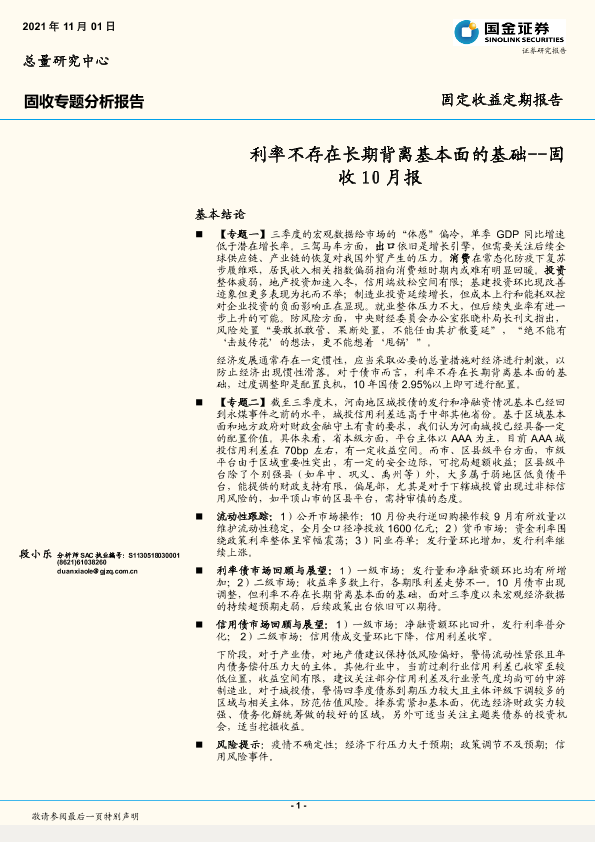 【国金证券】【20211101】固收10月报:利率不存在长期背离基本面的基础-28页