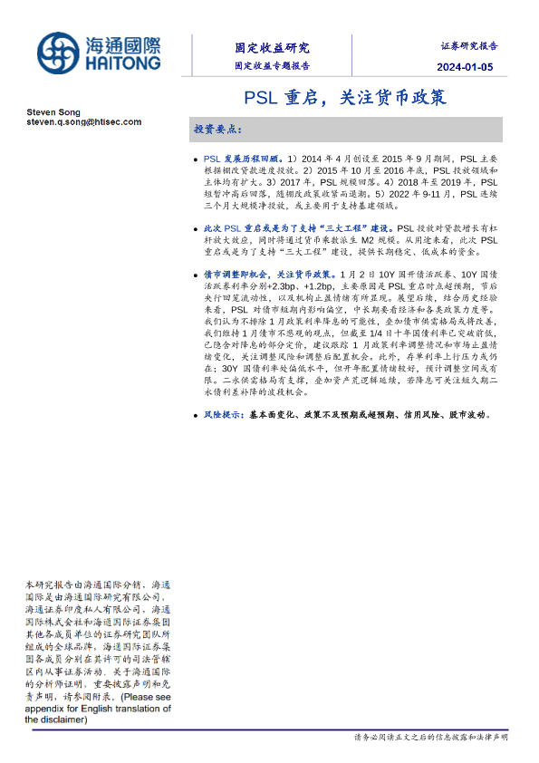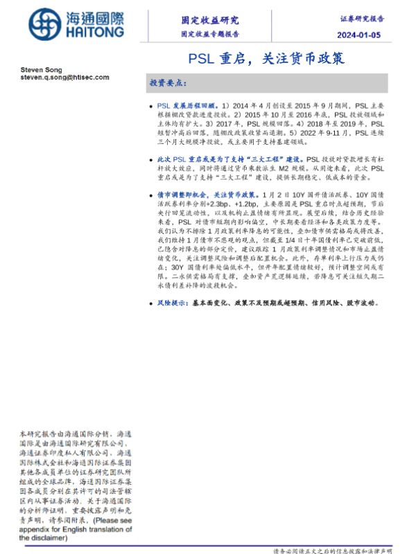 【海通国际】【20240105】固定收益专题报告:PSL重启,关注货币政策-14页